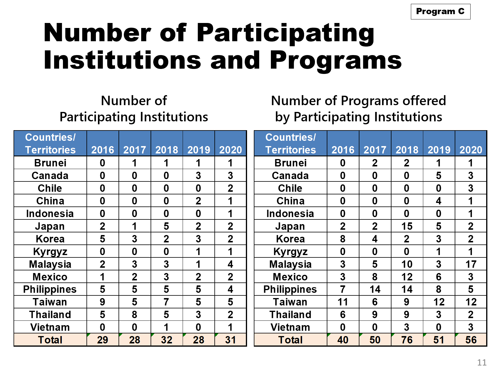 Item 5: Statistical Data of Exchange Programs